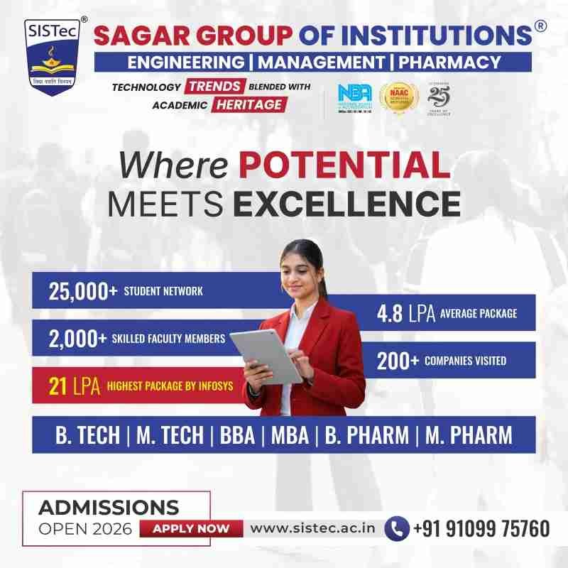 Sagar Institute of Pharmaceutical Technology and Research (SIPTec-R) is one of the Best Pharmacy Colleges in Bhopal, Madhya Pradesh with all Modern Facilities and Lab Equipments. It is the premier pharmacy college of Sagar Group of Institutions which was established in the year 2023 under the aegis of Shri Agrawal Educational & Cultural Society with the main objective of imparting quality pharmacy education. Since its inception, the institute is imparting quality education to undergraduates.