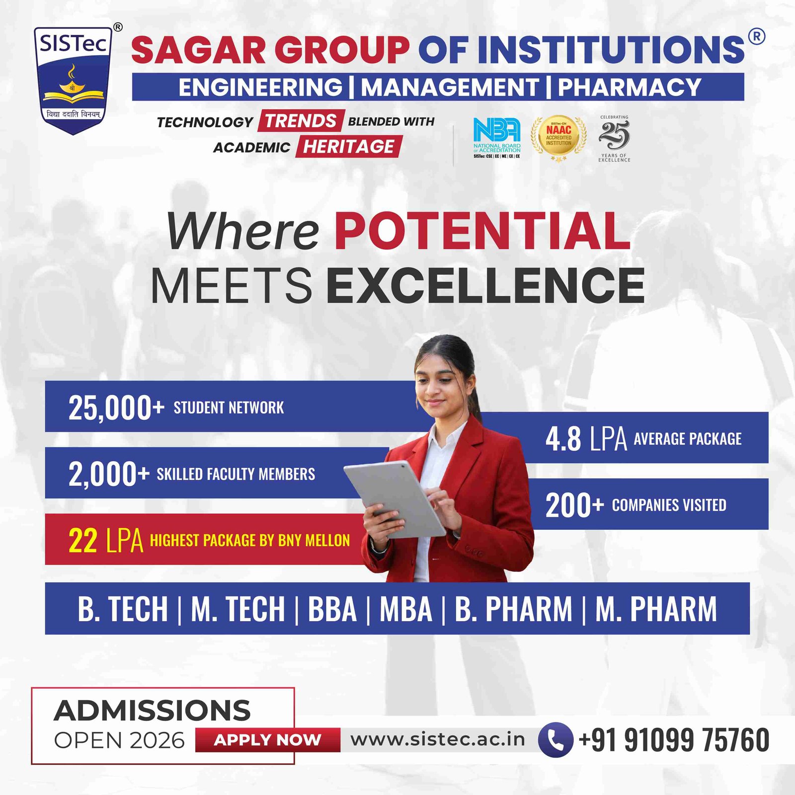 Sagar Institute of Pharmaceutical Technology and Research (SIPTec-R) is one of the Best Pharmacy Colleges in Bhopal, Madhya Pradesh with all Modern Facilities and Lab Equipments. It is the premier pharmacy college of Sagar Group of Institutions which was established in the year 2023 under the aegis of Shri Agrawal Educational & Cultural Society with the main objective of imparting quality pharmacy education. Since its inception, the institute is imparting quality education to undergraduates.
