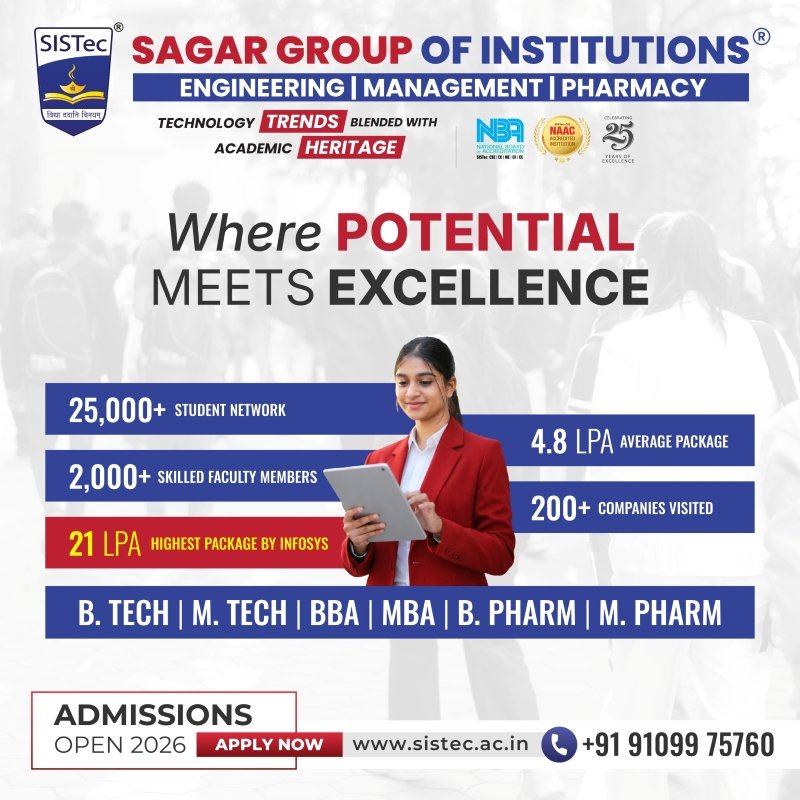 Admission is done through online counseling by the Directorate of Technical Education, Bhopal. The eligibility criteria for the admission in the various programs shall be as per norms laid down by Directorate of Technical Education, Bhopal.